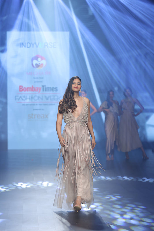 Ivory and Taupe Maxi Dress with Embellished Tassels