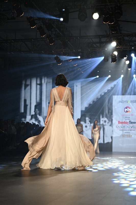 Taupe Maxi Dress with Cut-Outs and Intricate Hand Embroidery
