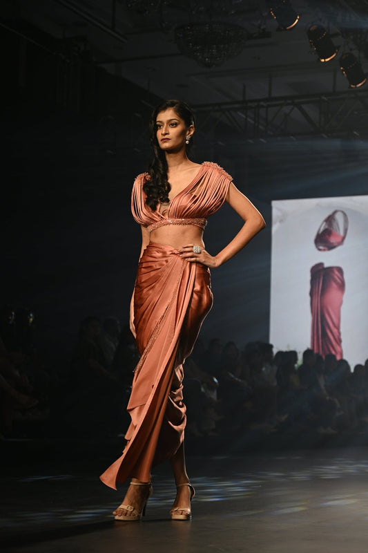 Nectarine Draped Skirt with a Bralette and Corded Top with Embellishments