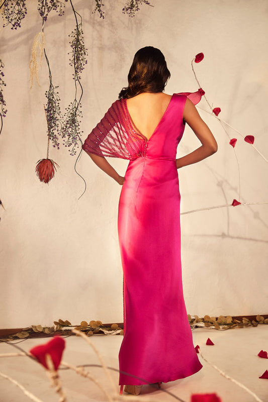 Sangria Silk Satin Cowl Skirt Paired with an Organza Shirt