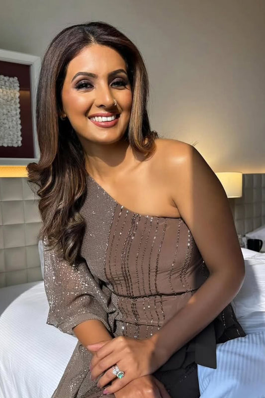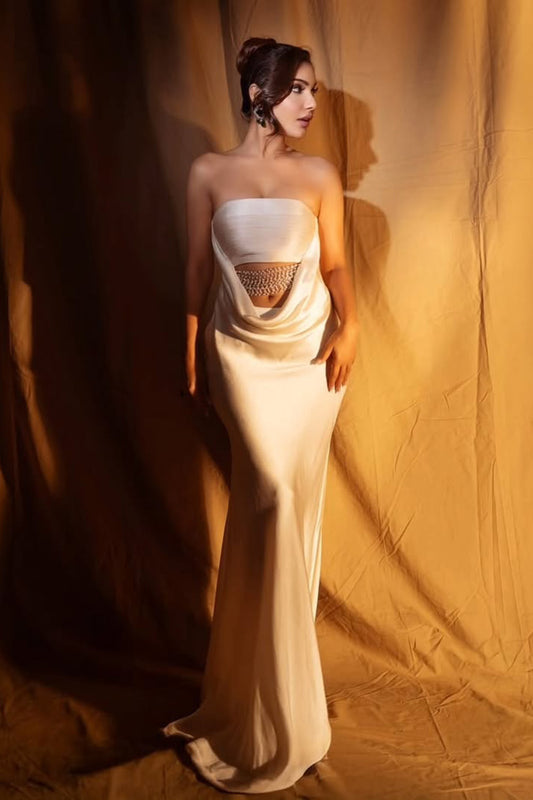 Ishita Raj in Ivory Cowl Gown with Embellishments