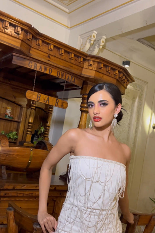 Rhea Singha in Ivory Short Dress with Embellishments and Cords