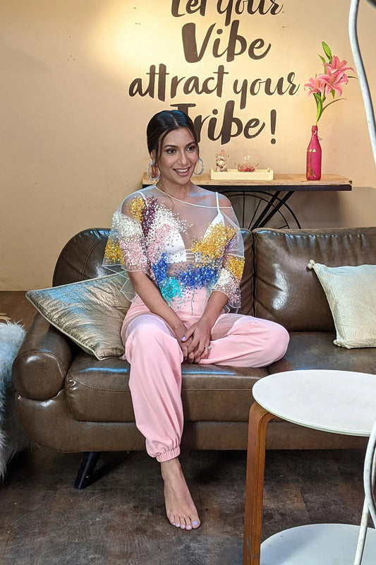 Miss Malini and Hina Khan in Tulle Top Paired With Bralette And Joggers