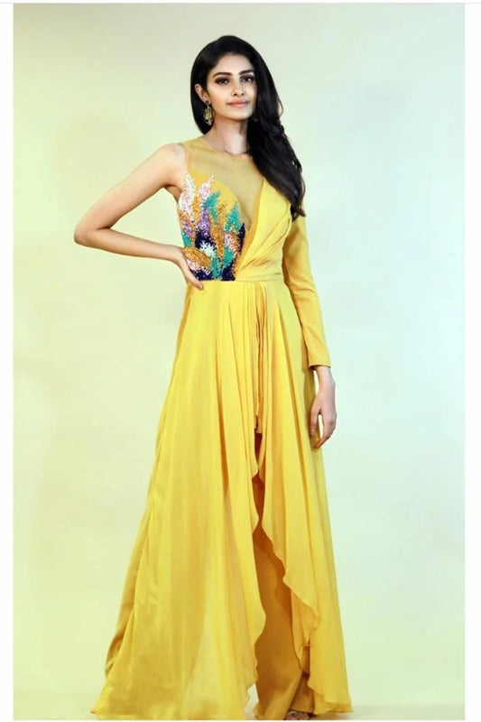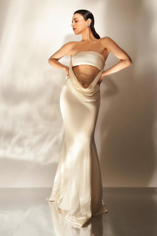 Nandani Gupta in Ivory Cowl Gown with Embellishments