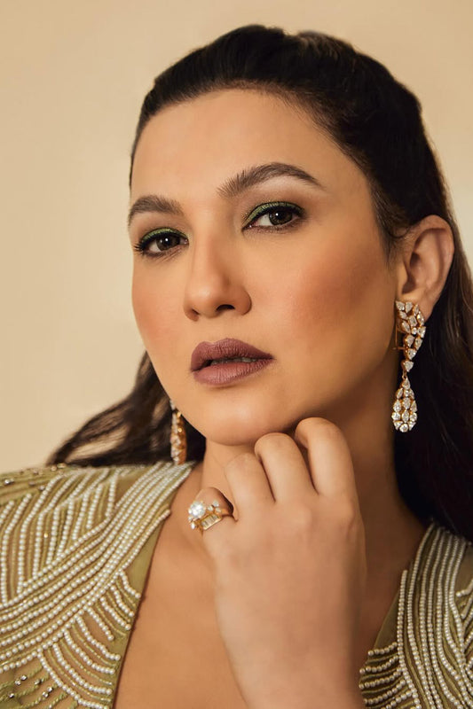 Gauahar Khan in Sage Green Cut-out Dress with an Embellished Jacket