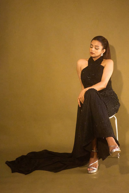 Shweta Sarda in Noir Tulle Fishtail Gown