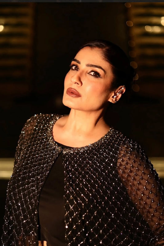 Raveena Tandon in Noir Crystal Grid Ensemble