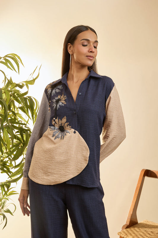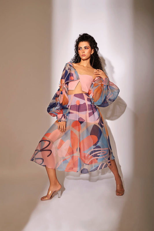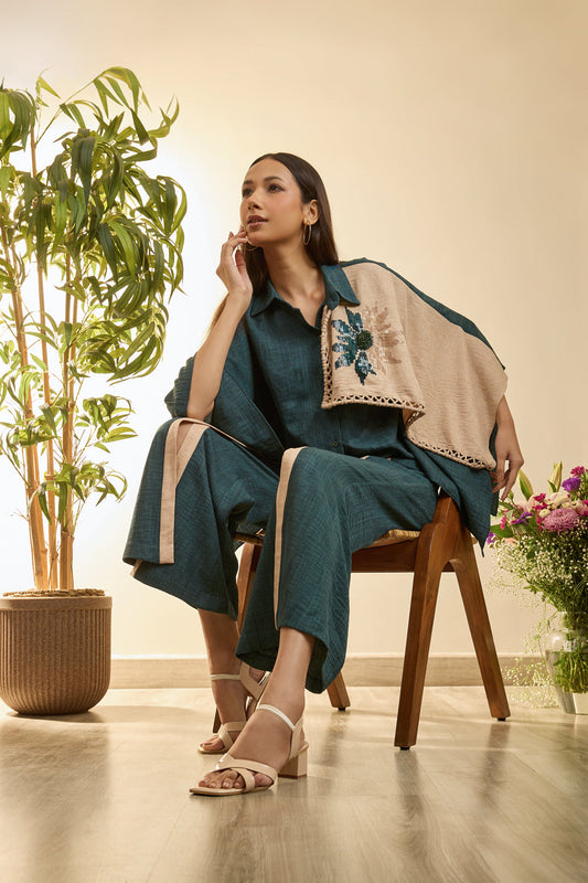 Beige Soft Bloom Co-Ord Set With Intricate Detailing