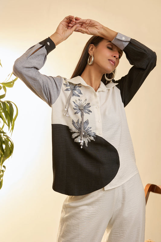 Limerick And Oyster White Co-Ord With Intricate Detailing.
