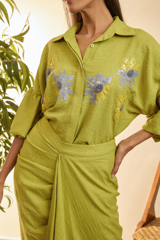 Yellow Soft Bloom Co-Ord Set With Intricate Detailing