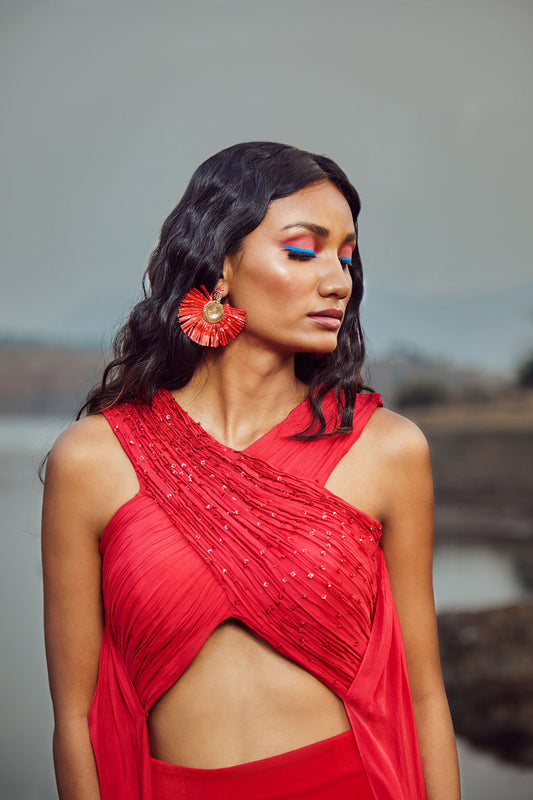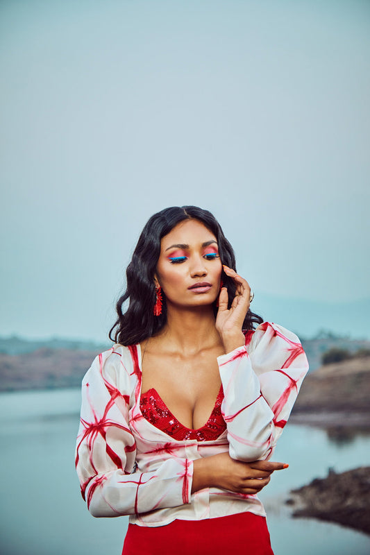 Tie-Dye Scarlet Red Organza Top With Trousers