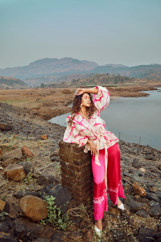 Fuchsia Tie-Dye Overlap Jacket With Pants