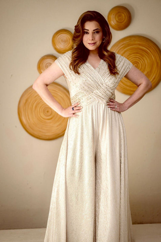 Rhea Singha in Ivory Short Dress with Embellishments and Cords