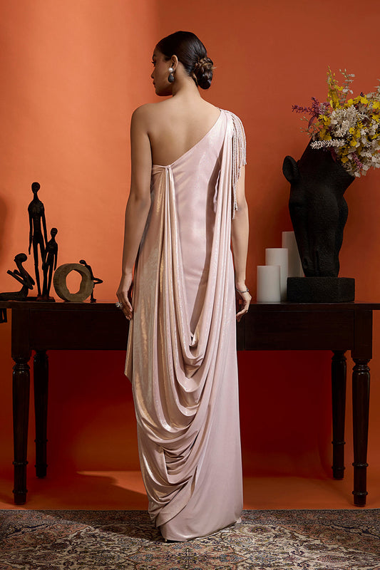 Metallic Blush Drape Saree Coupled with an Embellished Blouse