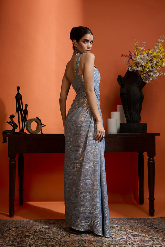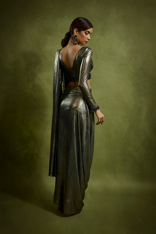 Slate Metallic Drape Saree
