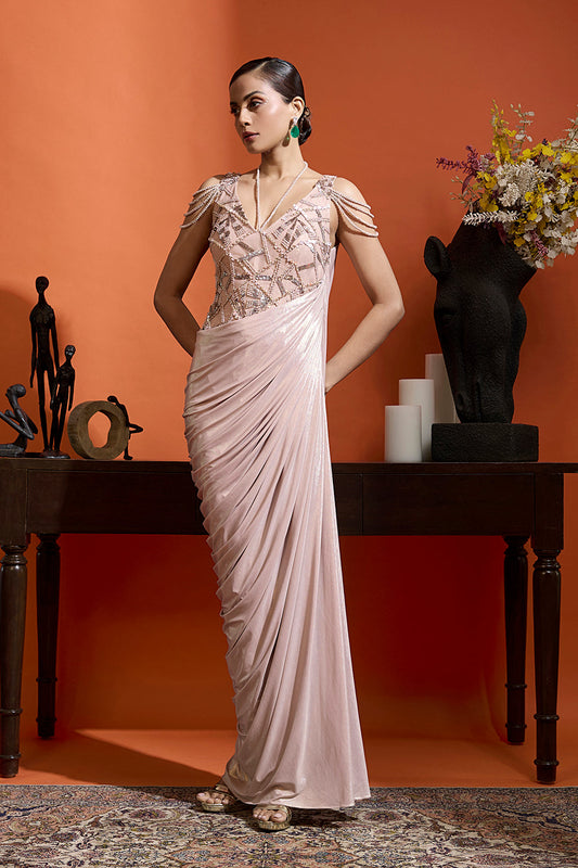 Metallic Blush Drape Saree Coupled with an Embellished Blouse