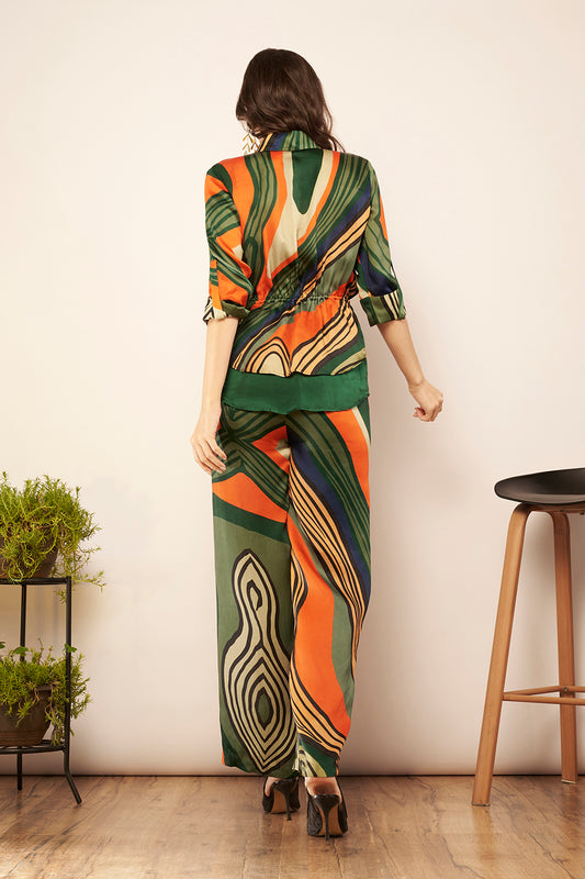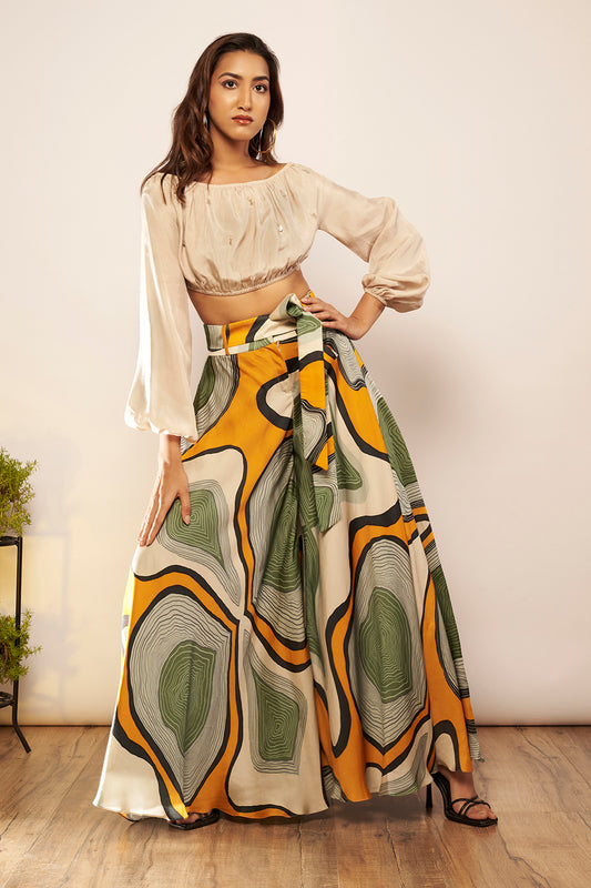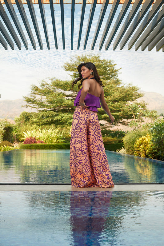 Taupe Palazzo Teamed with a Layered Top Embellished with Cords
