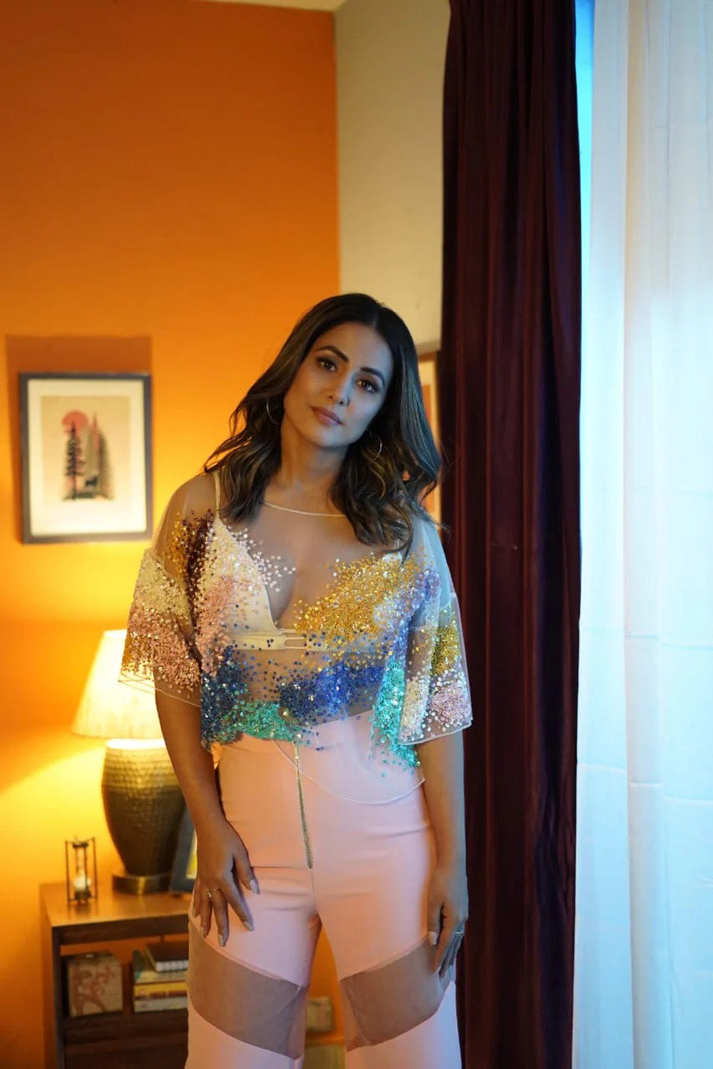Miss Malini and Hina Khan in Tulle Top Paired With Bralette And Joggers